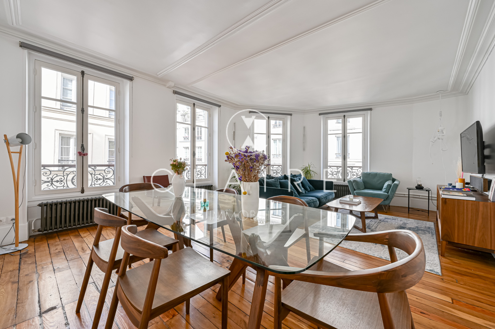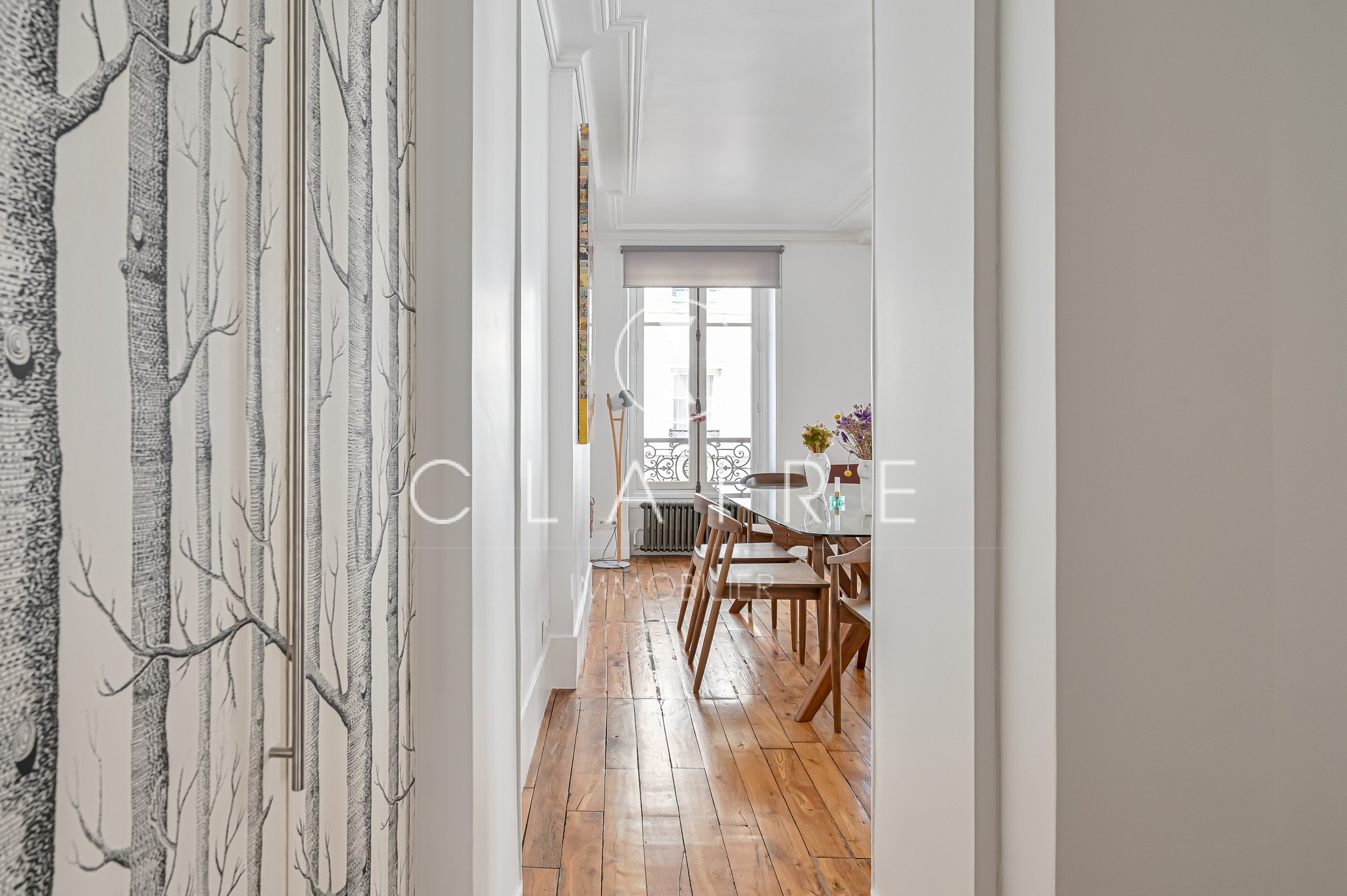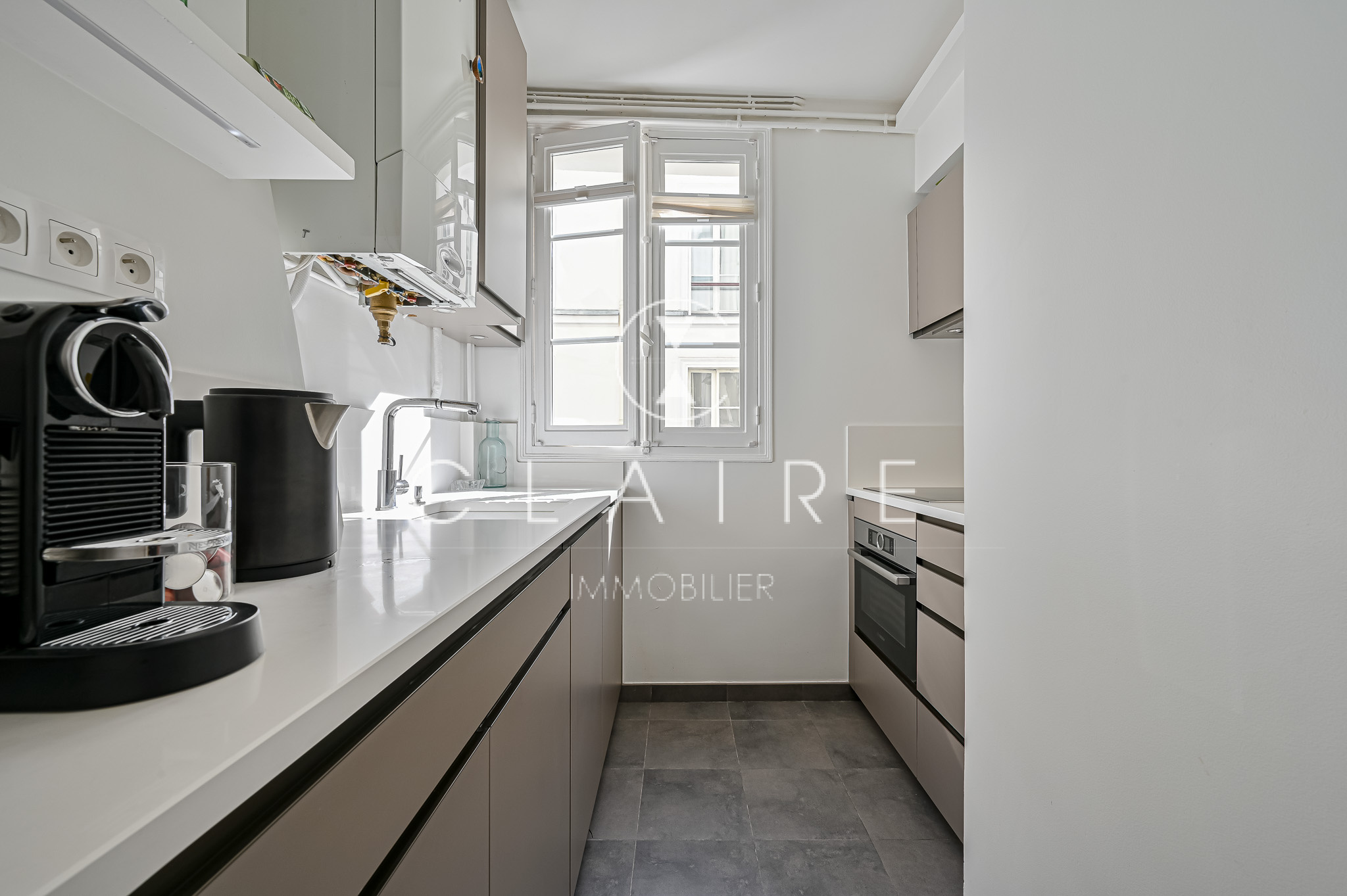 Paris 4e - Claire C' vous présente un magnifique appartement de 2 pièces haut de gamme, composé d'une entrée, d'un très beau séjour d'angle avec 4 fenêtres avec une vue dégagée sur la rue, d'une grande chambre spacieuse avec placards intégrés (dressing) exposé Est sur cour au calme, d'une cuisine indépendante toute équipée, d’une salle de douche (avec machine à laver et sèche-linge), d'un WC séparé, et d'une cave. Appartement entièrement rénové avec soin et goût, baigné de lumière. Un véritable coup coeur tant sur l’emplacement que sur la qualité de l'appartement.