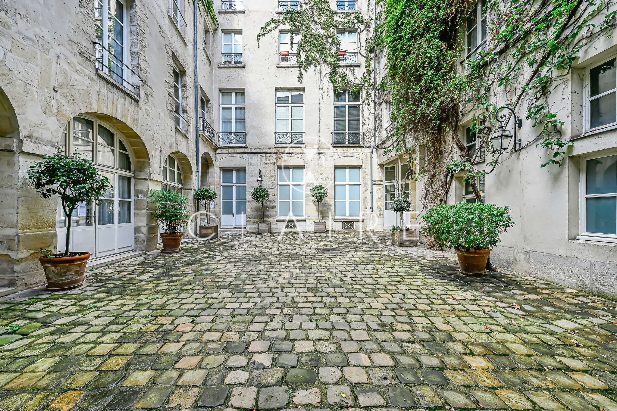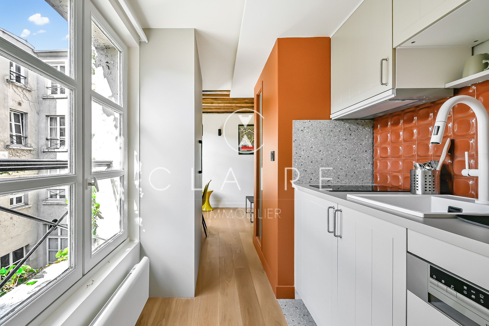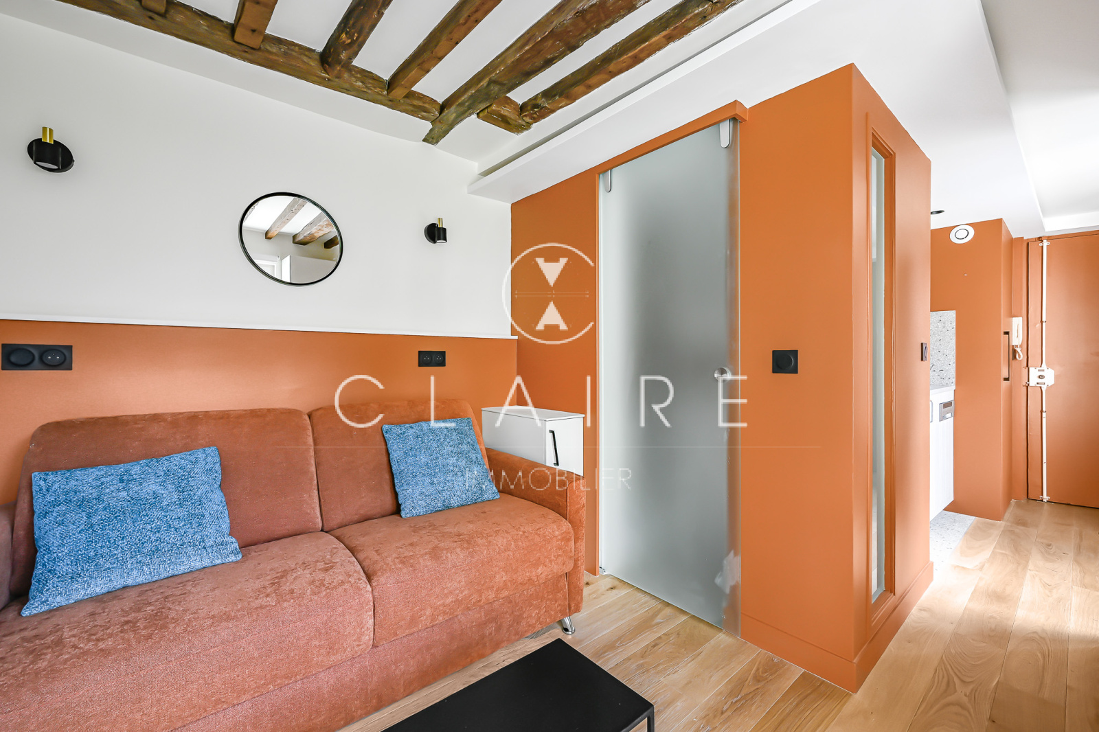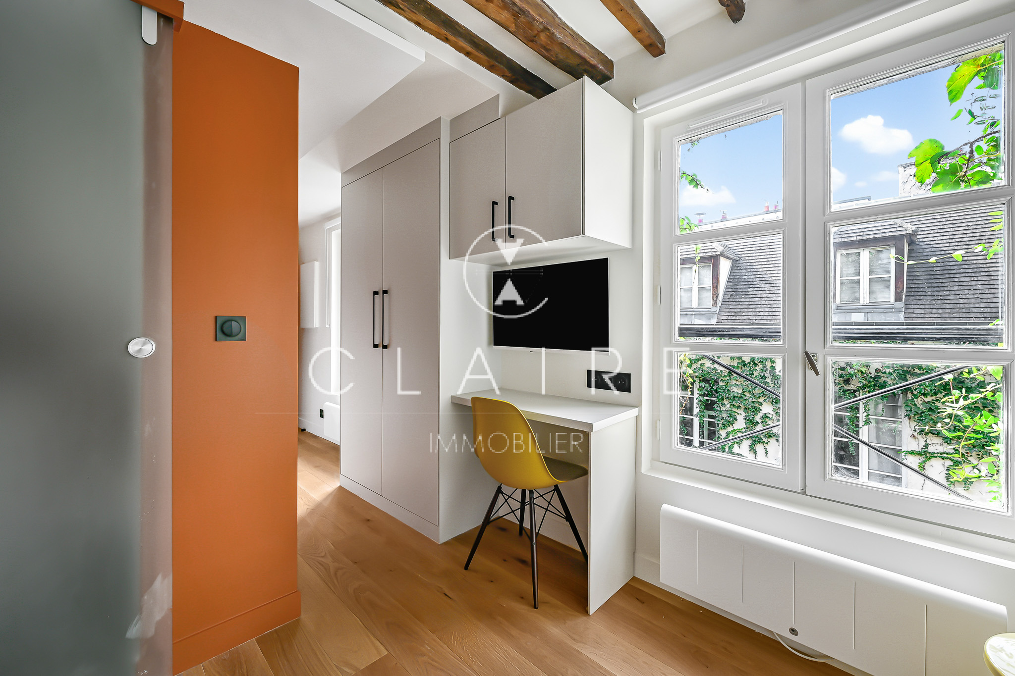 Paris 4e - rue du Roi-de-Sicile - Claire C'immobilier vous propose à la location sur cour, un charmant studio refait à neuf à l'été 2025 par un architecte et situé au 3e étage sans ascenseur.