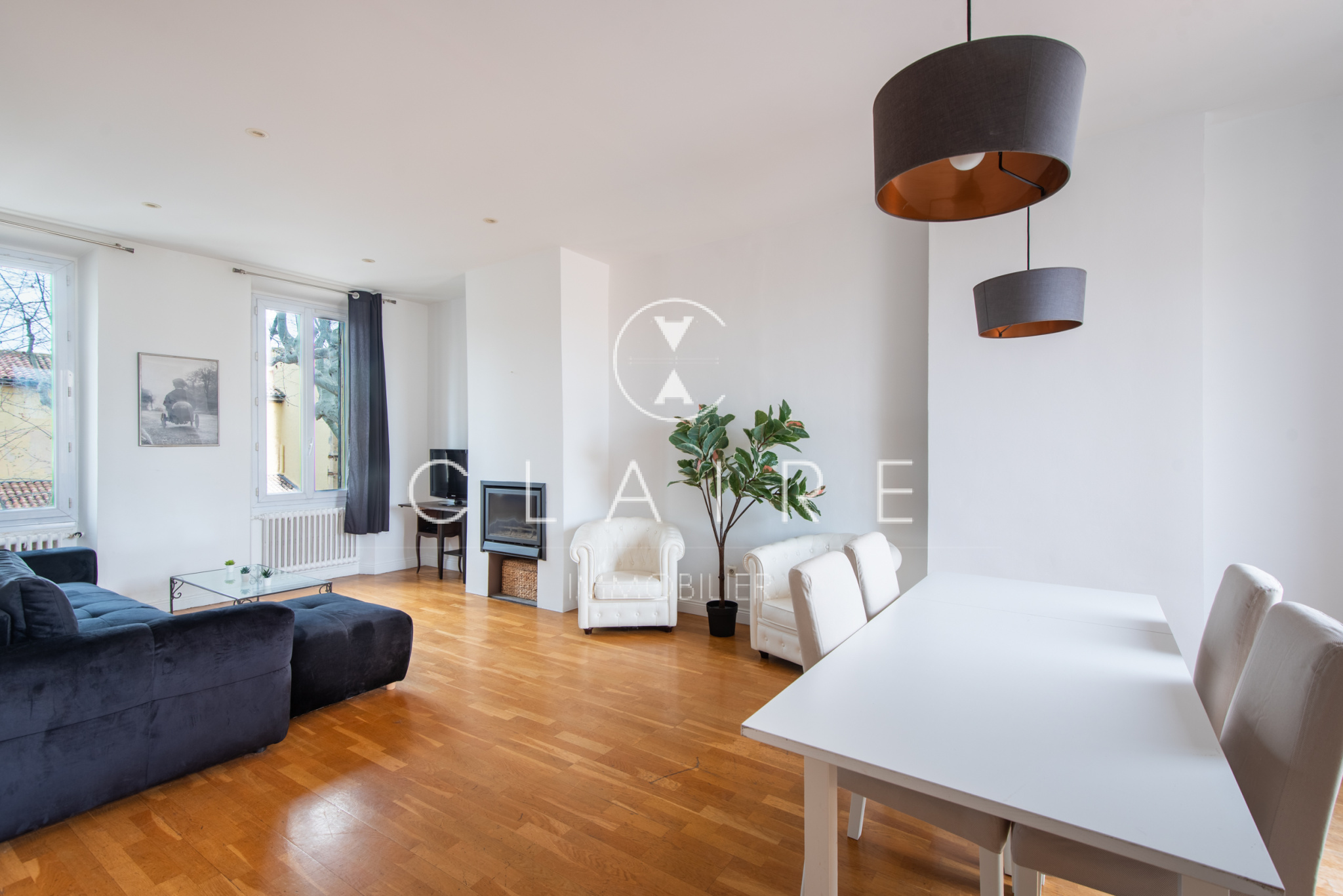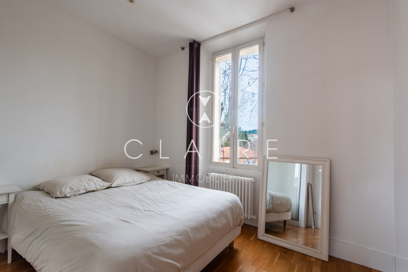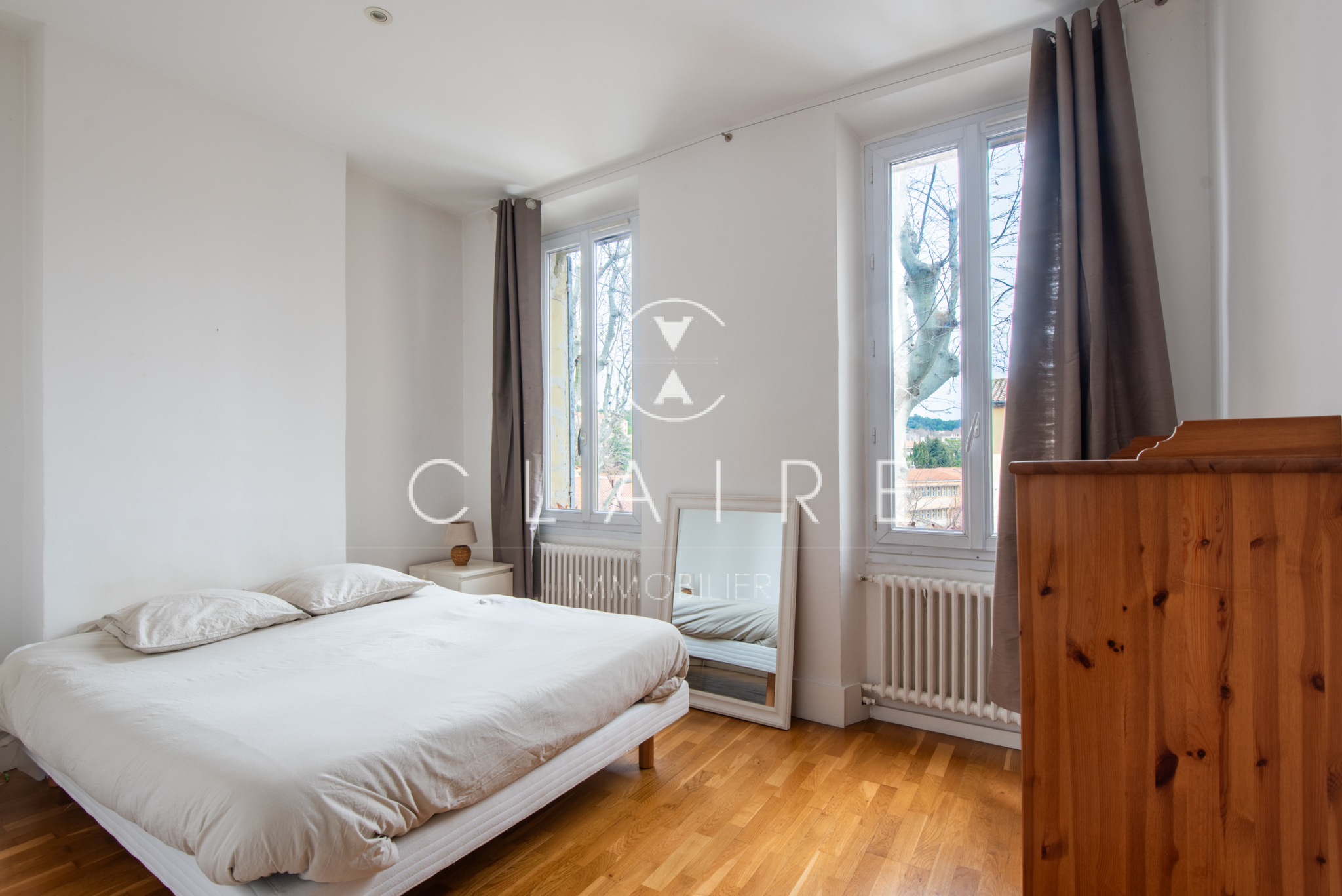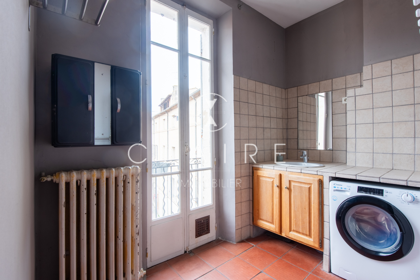Deux petits balcons exposés Sud-Ouest offrent une agréable vue dégagée sur les toits du centre-ville et une petite rue paisible à l’arrière du Cours Saint-Louis.