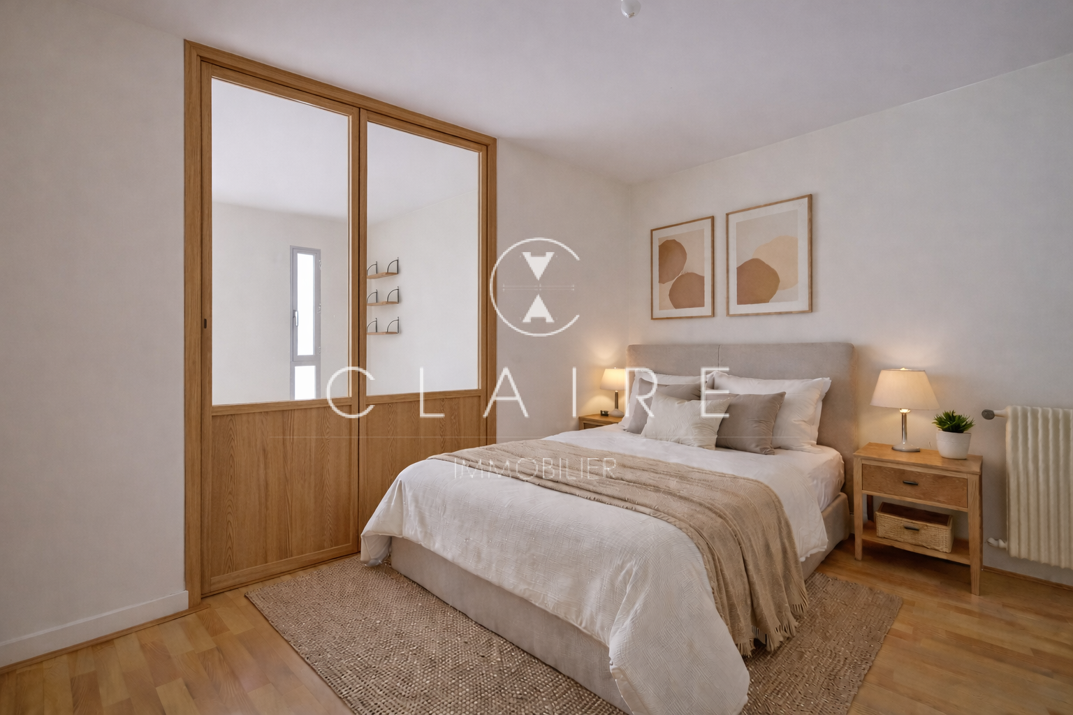 Aménagement modulable : possibilité de repenser l’espace en créant une cuisine américaine ouverte sur le séjour et en transformant la cuisine actuelle en chambre indépendante avec une grande fenêtre.