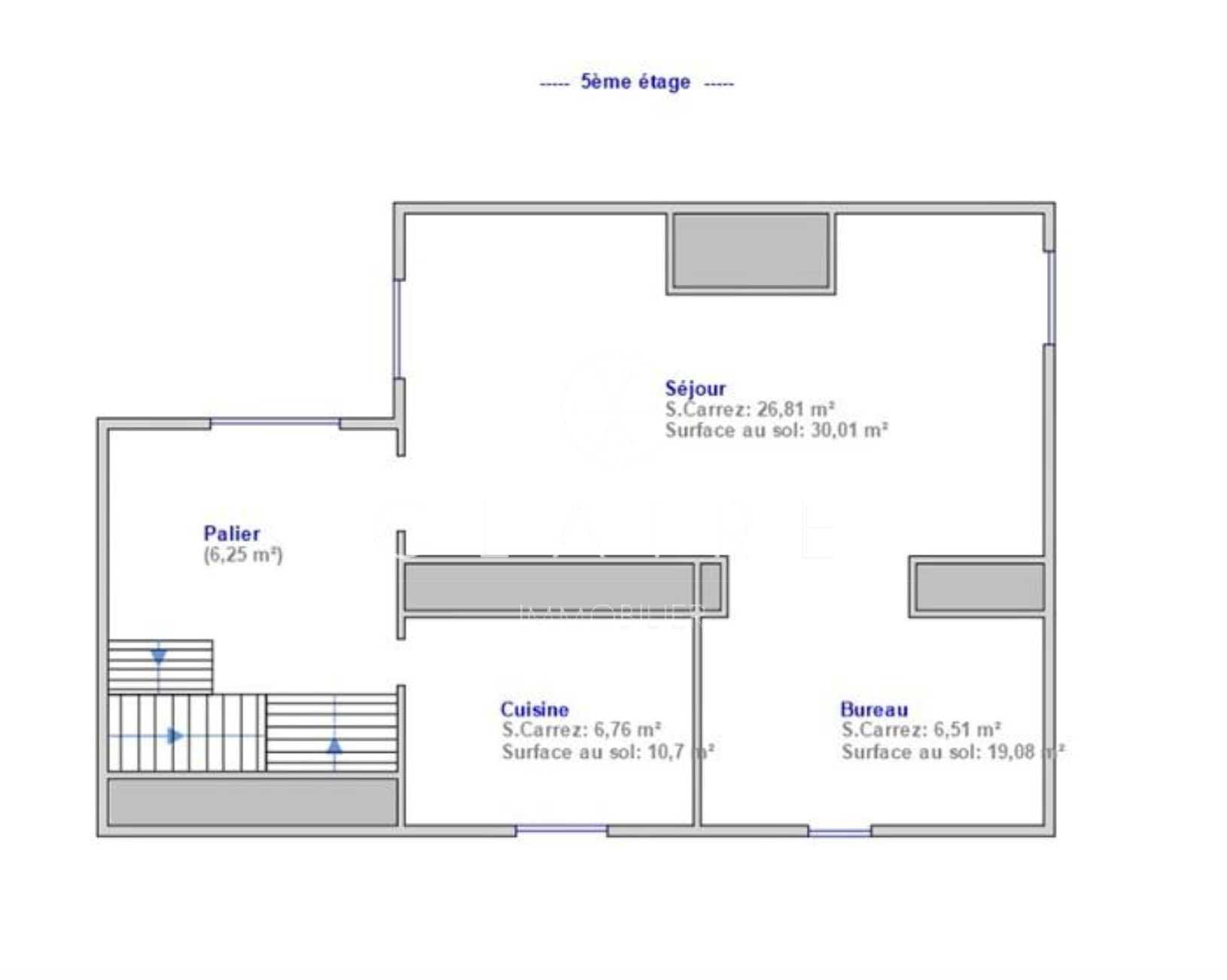 D’une surface de 79,20 m² loi Carrez (99 m² au sol), cet appartement séduira les amateurs d’espaces atypiques et de lumière.