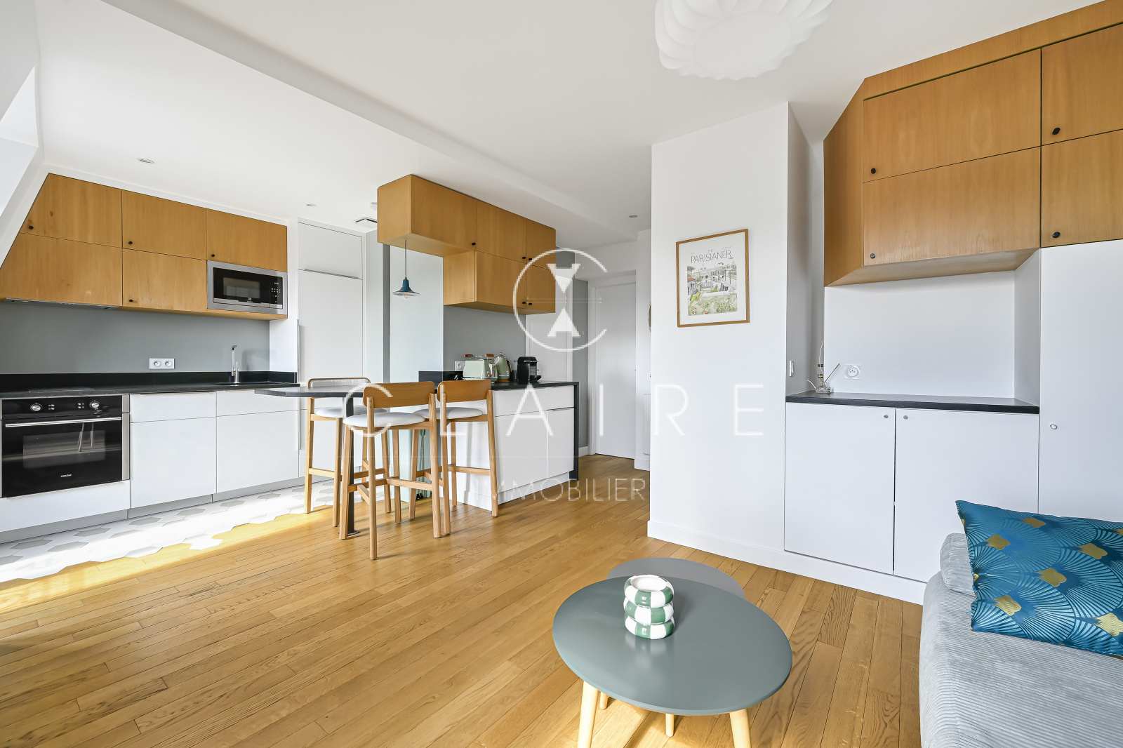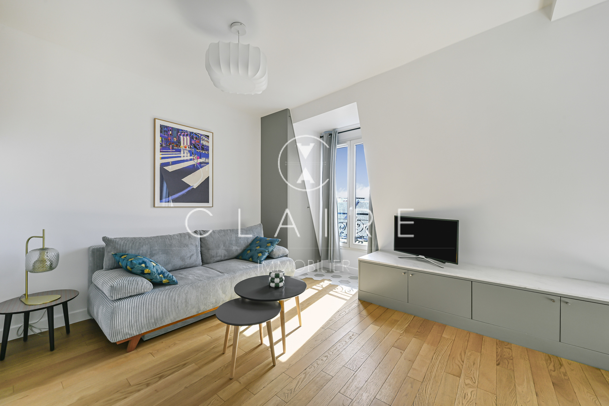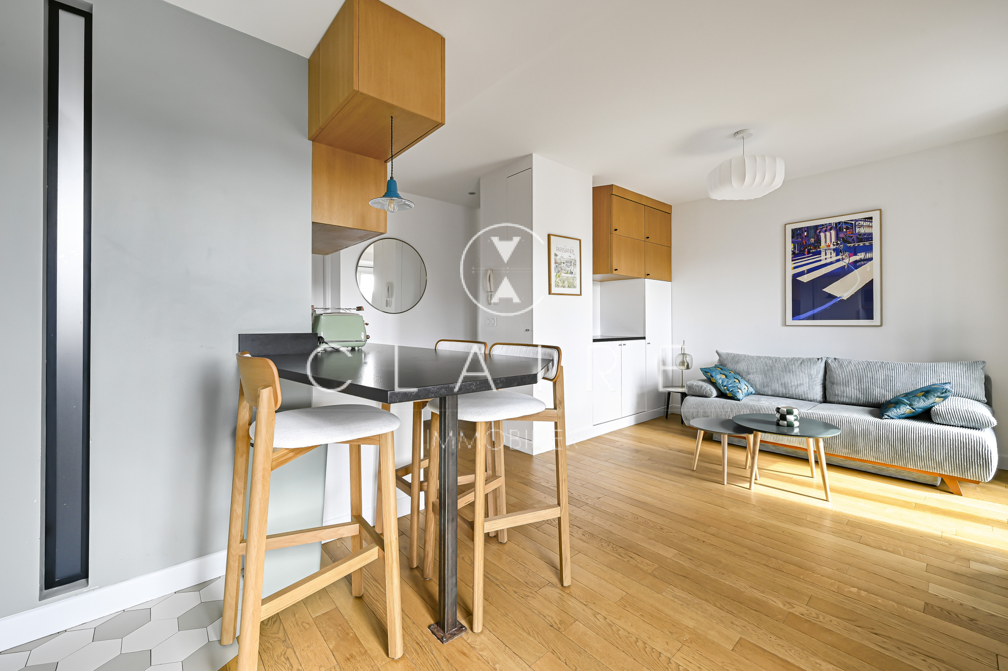 Baigné de lumière grâce à son exposition sud-ouest, cet appartement meublé avec goût offre une pièce de vie chaleureuse avec cuisine ouverte, entièrement aménagée et équipée. La chambre, intelligemment agencée avec un lit coffre, dispose de nombreux rangements intégrés. Une salle d’eau fonctionnelle avec une fenêtre sur cour.