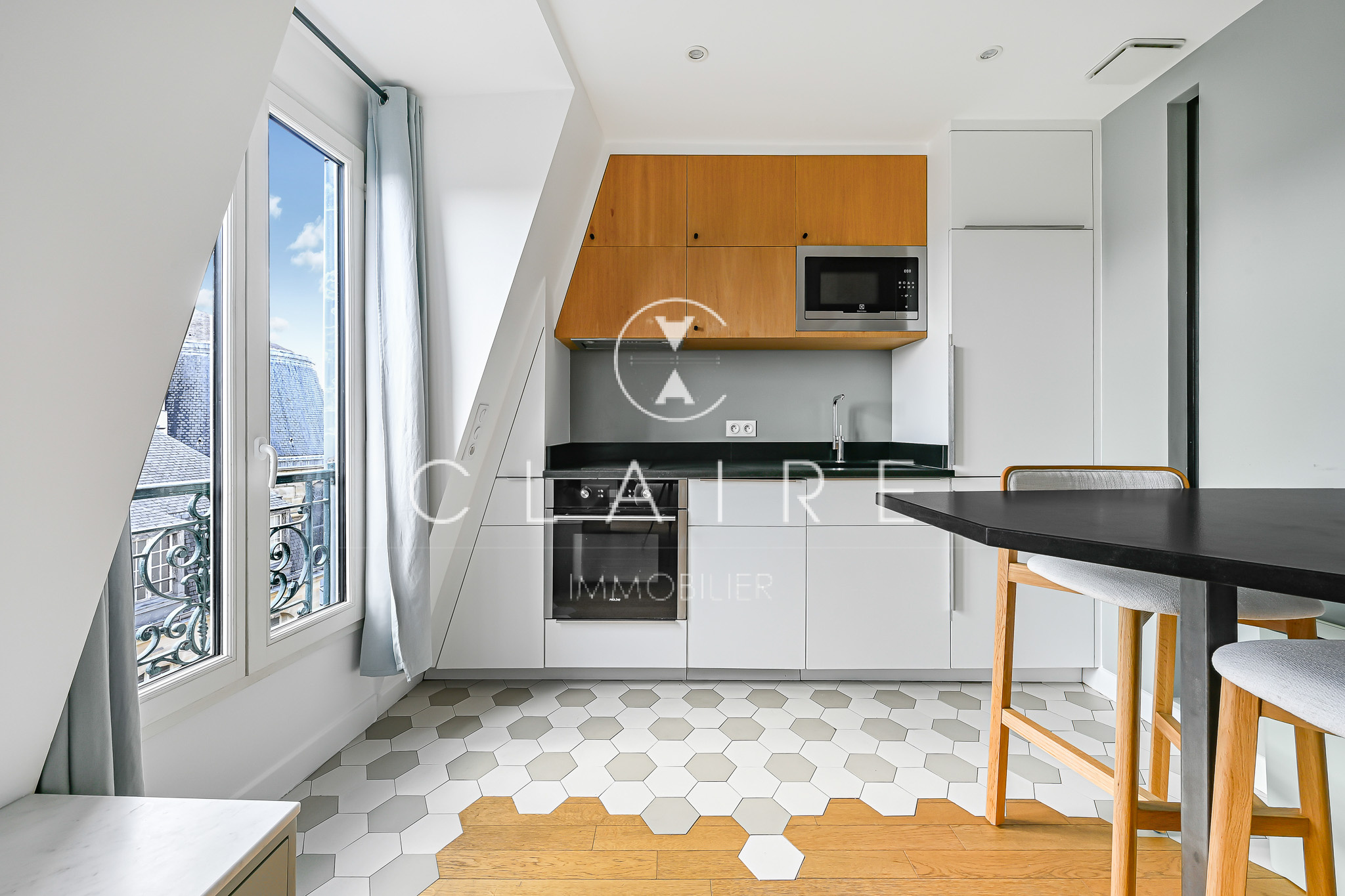 Paris 3e – Rue des Francs-Bourgeois Claire C’Immobilier vous propose, au cœur du Marais historique, ce charmant deux pièces de 33 m² carrez pondérés et 36 au sol, situé au 6e étage avec ascenseur d’un bel immeuble ancien en pierre de taille datant de 1880.