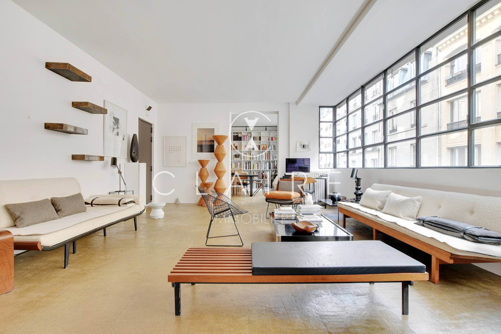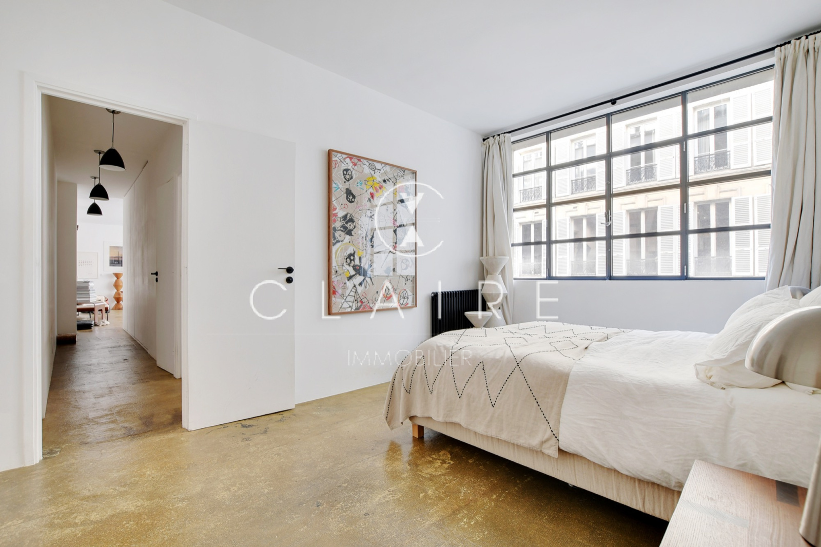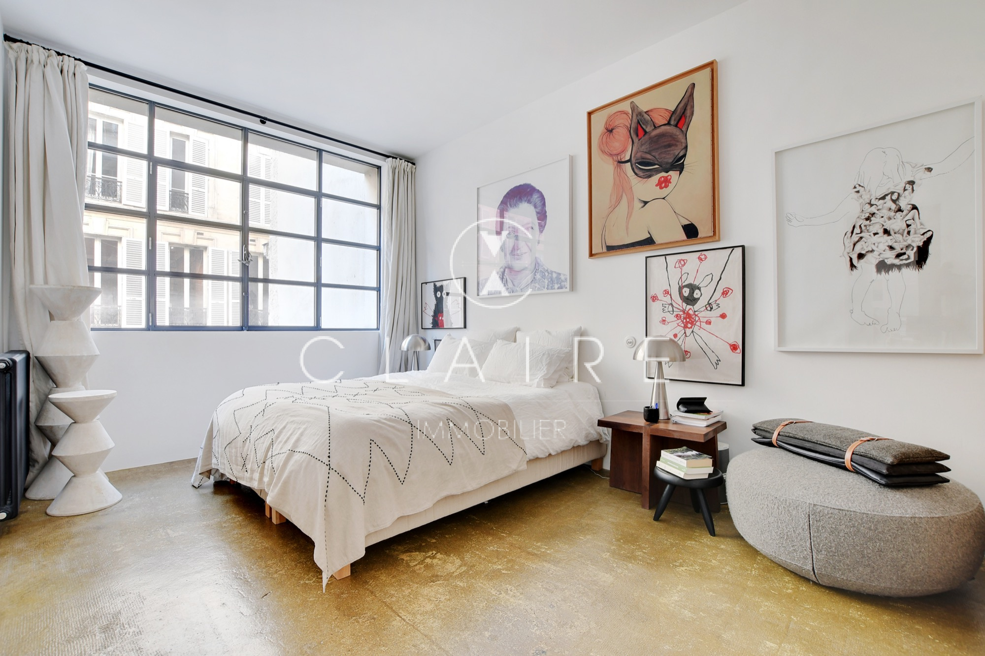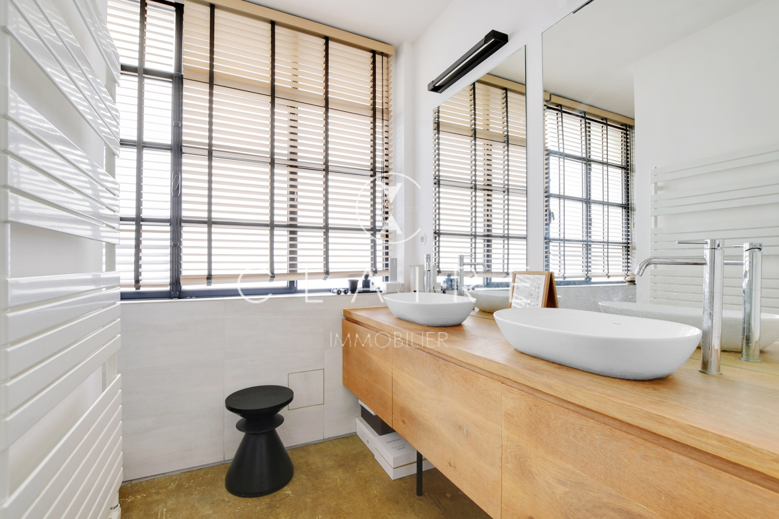 Ce bien rare, à l’esprit loft new-yorkais, séduit par sa belle hauteur sous plafond et ses grandes fenêtres atelier. L’appartement se compose d’un vaste double séjour de 30m2 avec cuisine ouverte de 8m2 (qui peut également être cloisonnée en verrière), d’une salle à manger pouvant devenir une seconde chambre ( 14m2), d’une chambre principale (14m2) avec salle de douche, ainsi que de nombreux rangements.