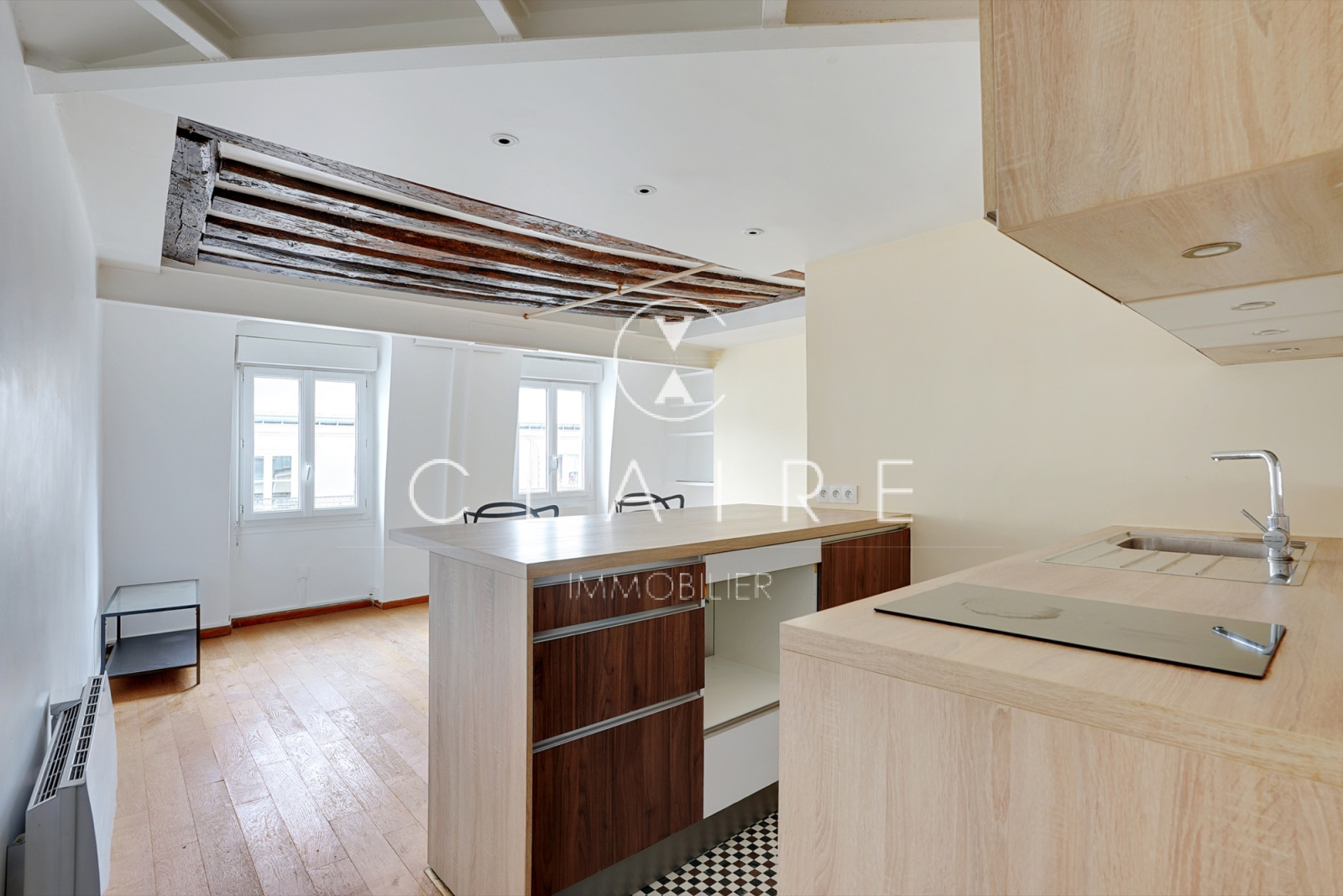 Paris 3e - Rue Notre-Dame-de-Nazareth - Claire C’immobilier vous propose en exclusivité, ce charmant studio lumineux de 28,65 m² Carrez et 30m2 au sol, situé au 5ᵉ étage d’un immeuble ancien bien entretenu.