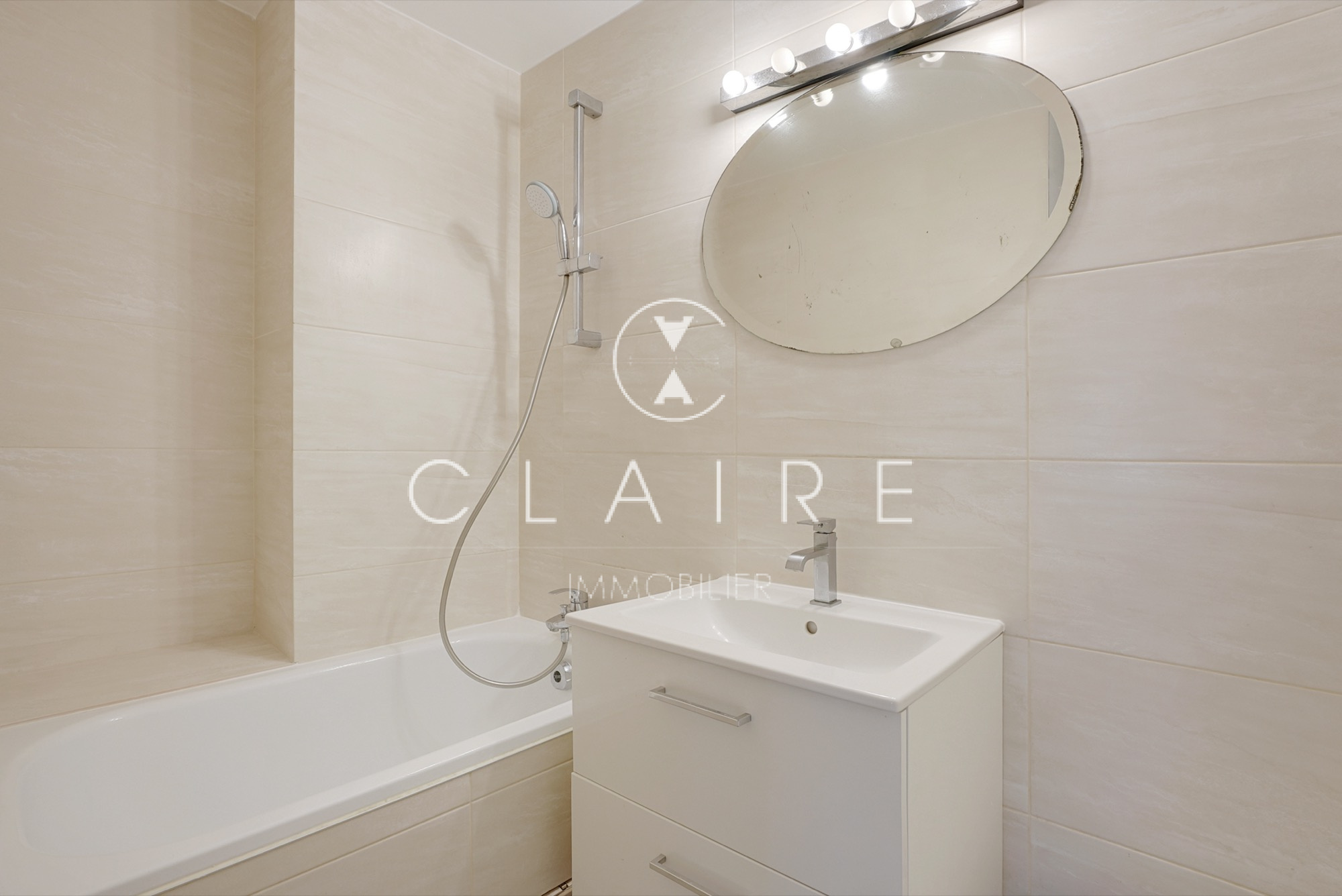 Baigné de lumière grâce à son exposition plein sud, l’appartement séduit par son charme parisien avec parquet et poutres apparentes.