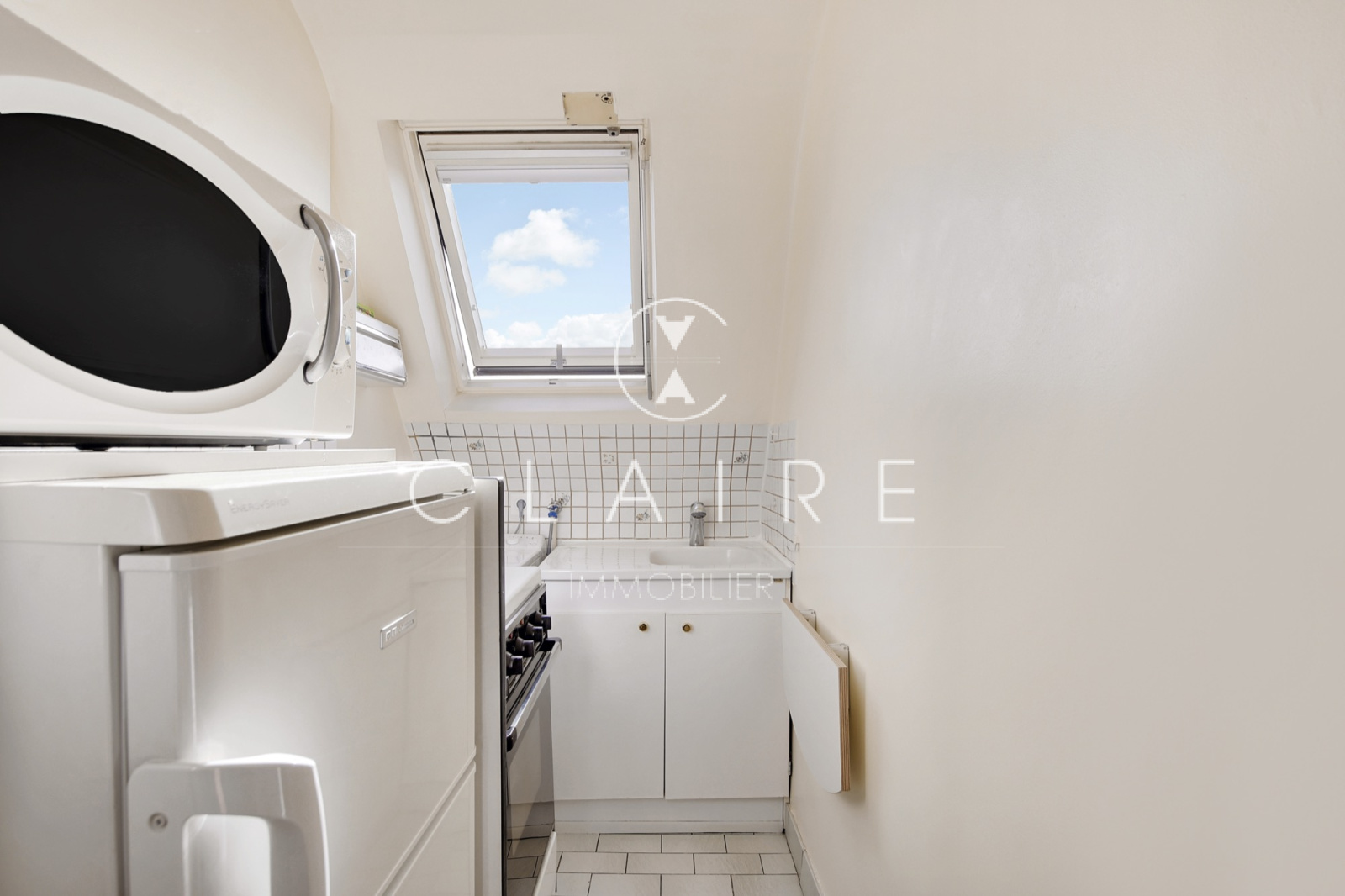 Paris 5e - Au cœur du Quartier Latin, sur la mythique place de la Contrescarpe, Claire C’immobilier vous propose ce charmant deux-pièces lumineux, situé au dernier étage d’un immeuble ancien bien entretenu (sans ascenseur).