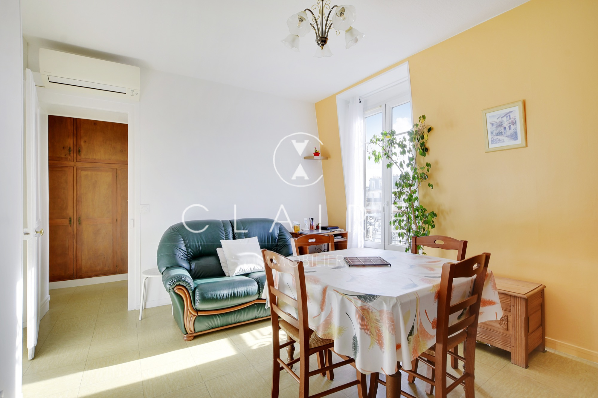 D’une surface au sol de 37,61 m² au sol et 32,76 m2 avec un grenier indépendant sur le palier, l’appartement séduit par son charme parisien et sa vue dégagée, sans aucun vis-à-vis.